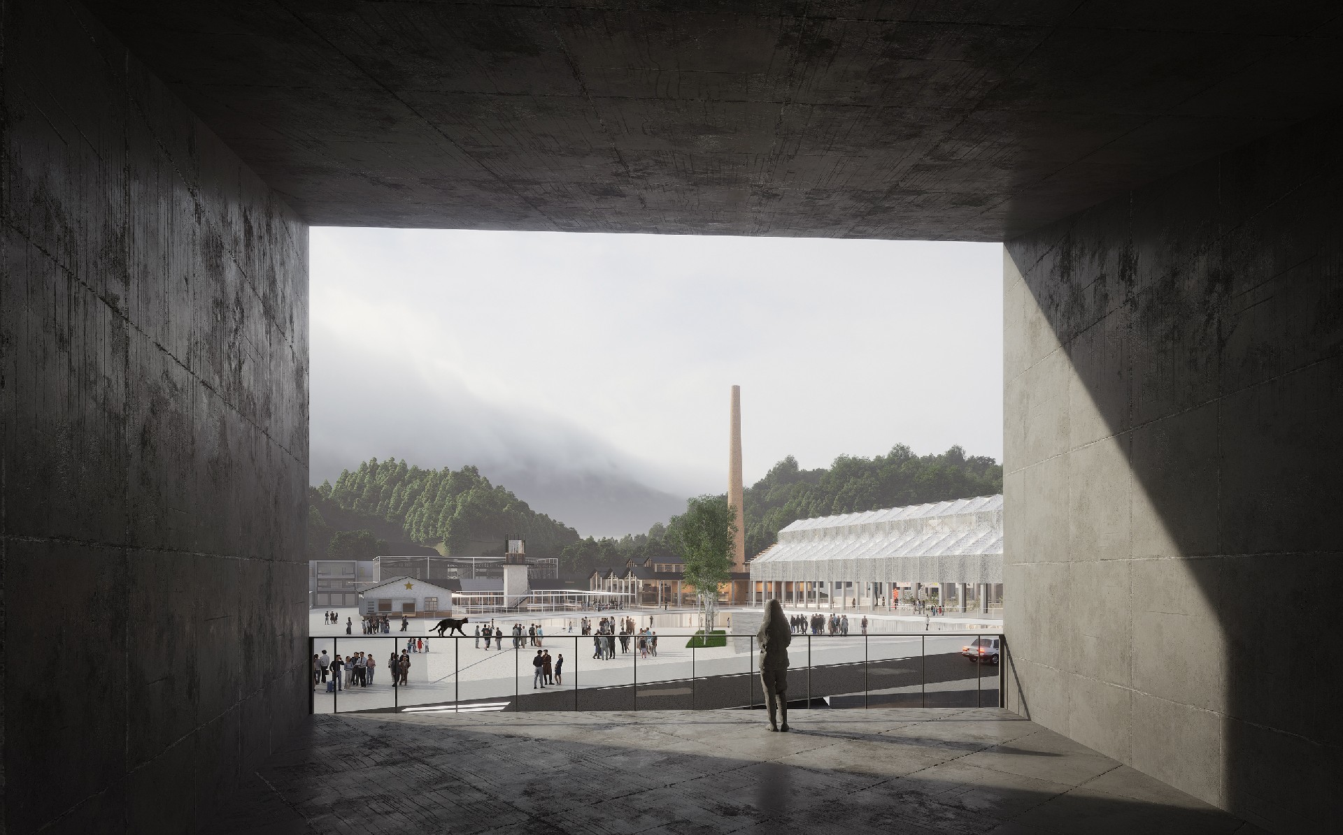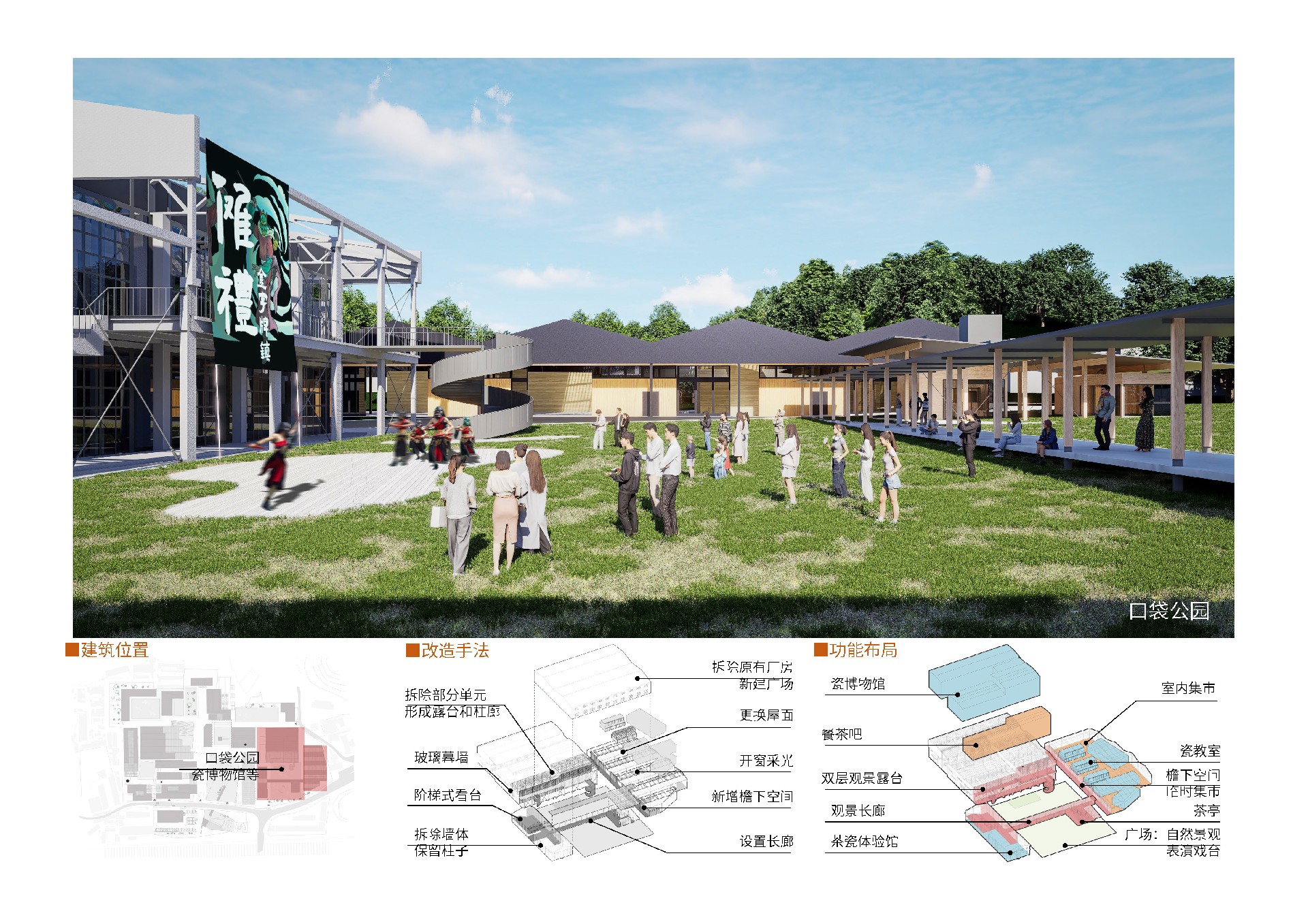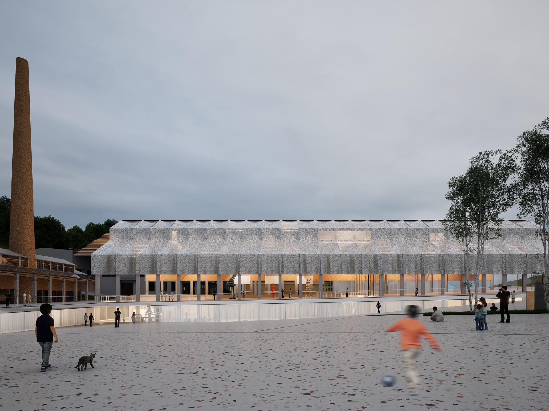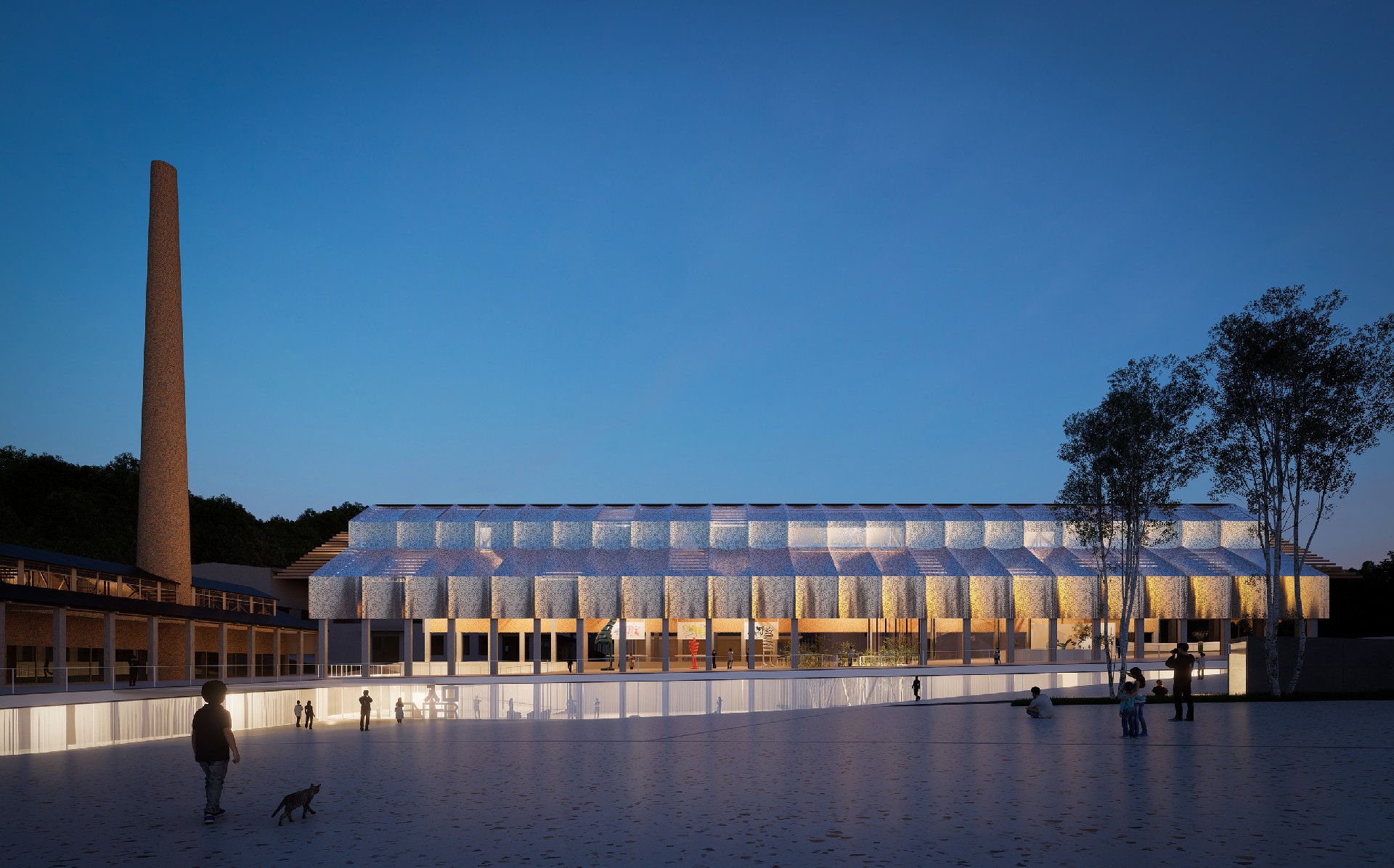 设计从一段回忆出发:“沿着岭道而下,望见高耸烟囱的那一刻,祁门人对生活的热望,便升腾于心。”瓷厂的土与火,祁红的茶与焙,在相似的工艺与节律中诉说着祁门人勤劳与智慧的日常。我们从中提炼出本案的核心理念:将日常转化为艺术,以日常构建未来。