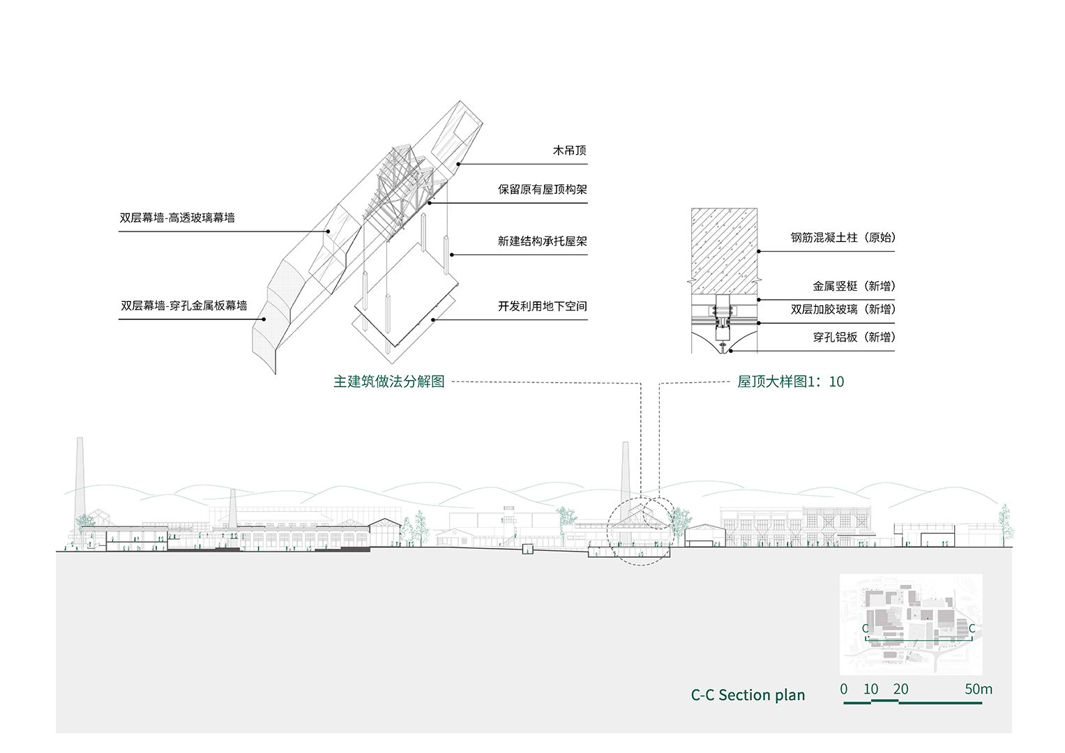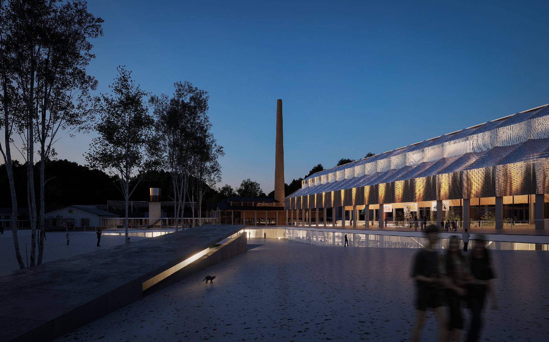项目以“日常式文创园”为导向,避免将老工业基地单一地消费为观景式文旅资源,而是深入思考如何在保留工业遗产精神的基础上,引入面向居民与游客的共用机制,重构空间活力。设计尊重场地原貌,梳理旧有动线结构,在保留历史肌理的基础上,引入慢行网络、共享空间与小尺度的文创经营单元,赋予场所新的生活功能。厂房被重新定义为集展览、制作、交流于一体的文化节点;原有作业流线则转化为游走于日常与展演之间的体验路径。